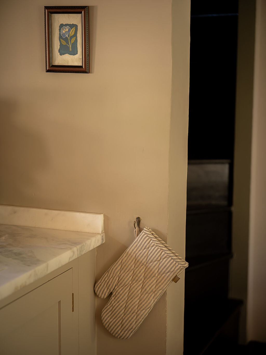 A timeless kitchen essential reimagined in classic ticking stripe, this oven glove combines everyday function with considered design. Made from soft yet durable cotton and padded for heat protection, it’s as practical as it is stylish.